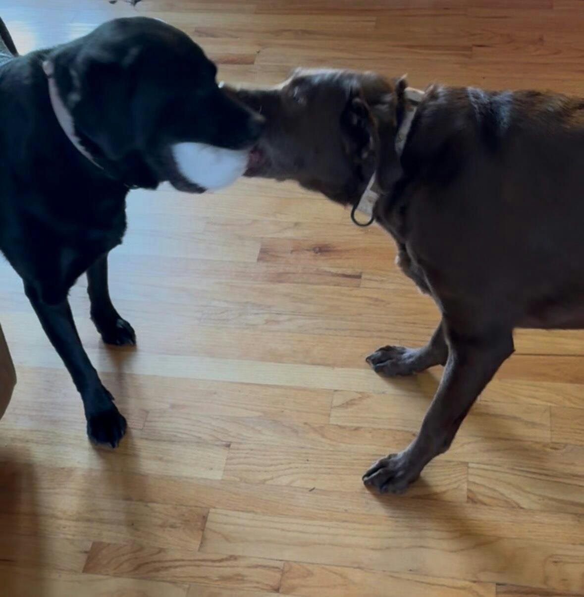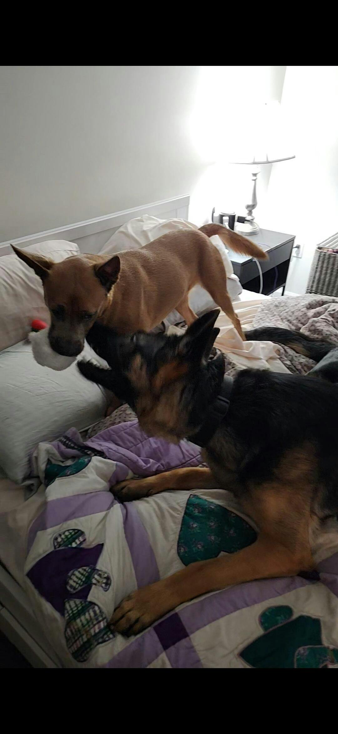 I have 2 large bully breeds that are focused and determined. Given time they can destroy ANYTHING. Louise loved the Santa with the ball inside. She and her big sister love the steering wheel equally. It is clearly a pup fave in this house.
