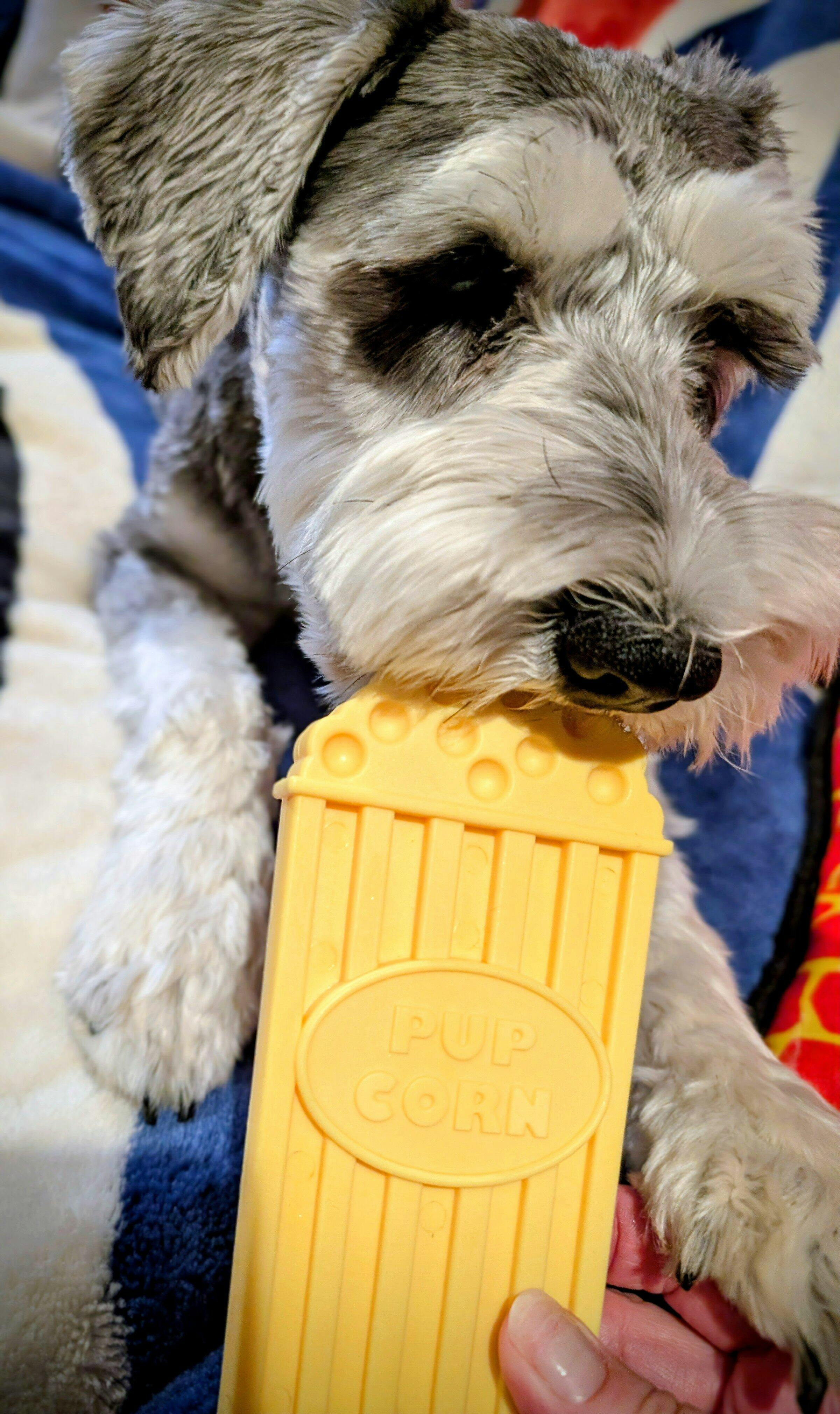 Received our first box of goodies. Some interesting toys. I gave my puppy the Pupcorn chew toy. He spent hours playing and chewing it and it is still in good shape. Can’t wait to see how he reacts to the remaining toys from the box.